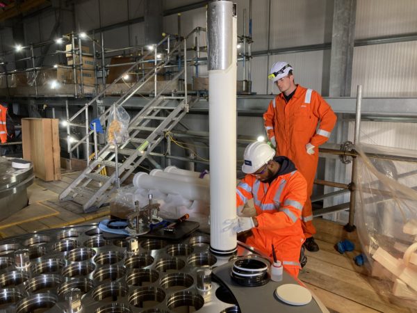 MWH Treatment Project Director Richard Thomson said “the project team had installed the innovative ceramic membrane pressure vessels, pipework, pumps and ancillary equipment. All the other process plant has been manufactured and installed during the summer months to make the most of the dry weather. The complex electrical control panels have been factory tested, installed and are now being connected for commissioning. The HV network will be energised in October which is a major milestone achievement.”